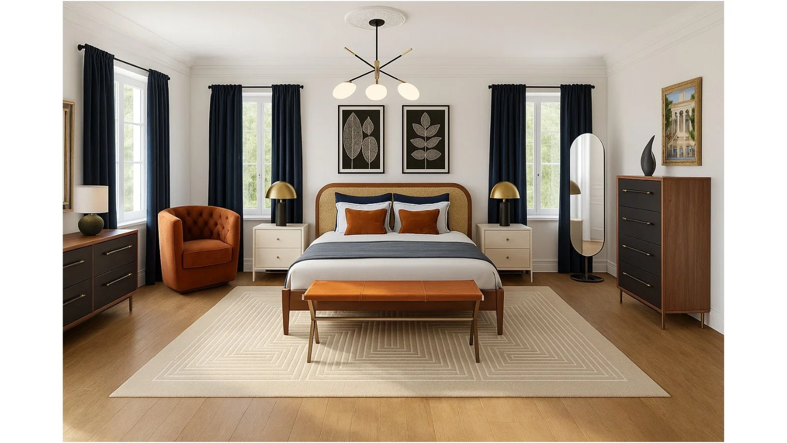 Our Bedroom Projects through E-Design are crafted to create a restful, personalized retreat. Each design includes an Inspiration Board to capture your style, Floor Plan layout solutions to maximize comfort and functionality, a concept board to show you actual products and a realistic 3D Render visualization of your future space. You'll also receive a clear budget breakdown, a clickable shopping list, and a detailed guide to bring it all together plus designer support available throughout the process to help refine every detail.