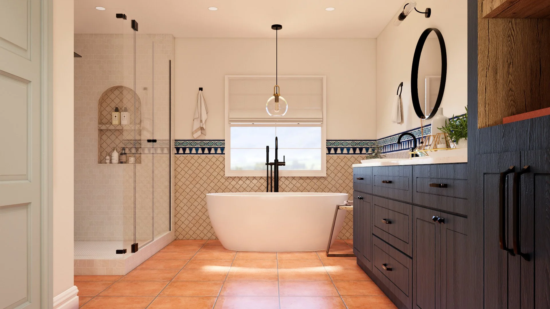 Our Virtual Bathroom Design Service makes updating your space stress-free. We begin with a video call to learn your style and needs, then create an inspiration board, smart layout options, a concept board, and realistic 3D renders—plus a budget breakdown of recommended products and materials. In the second phase, you’ll receive detailed technical plans, a curated shopping list, and virtual support to guide you seamlessly from design to completion.
