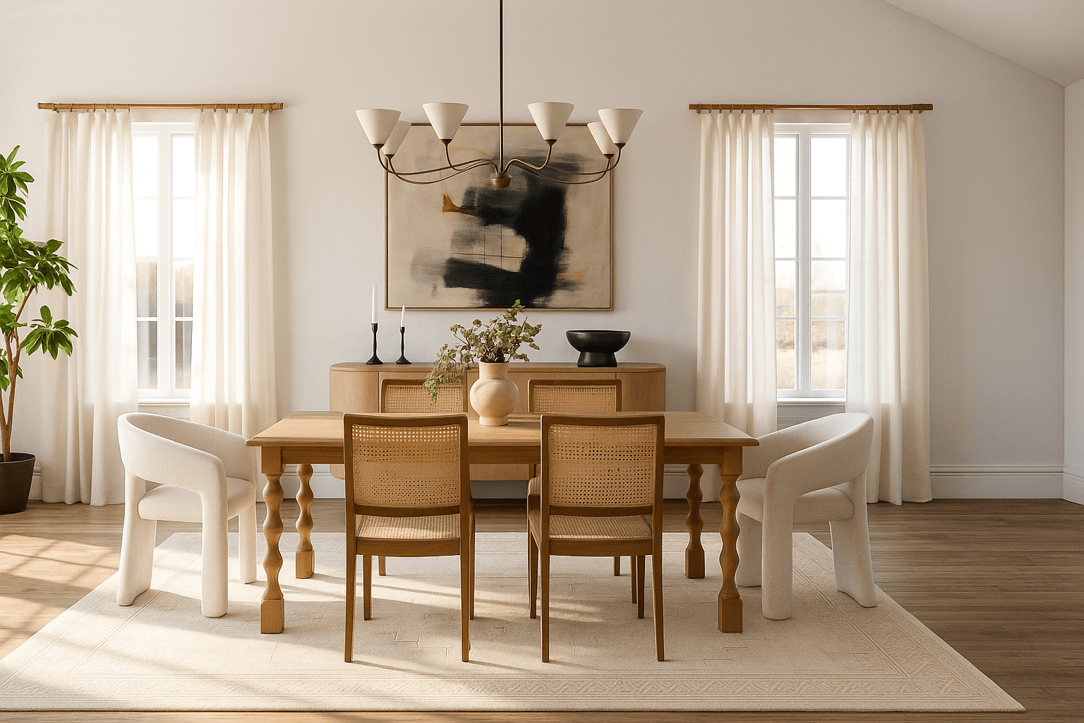 Our Dining Room Projects through E-Design provide a customized solution to elevate your space. Each project delivers a carefully crafted inspiration board, floor plan layout options designed to optimize flow, a curated concept board reflecting your style, and a detailed 3D rendering to visualize the final design. Alongside these, you’ll receive a comprehensive budget guide, a shoppable product list tailored to your needs, and clear step-by-step instructions to facilitate the transformation. Continuous designer support ensures a seamless and enjoyable design experience from start to finish.